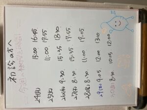 11月24日(月)~11月30日(日)までの新規患者様のご予約の可能時間になります。