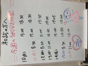 上記お時間以外にもキャンセルや予約時間の変更により予約の空きができるケースもございますのでお気軽にお電話、お問合せお待ちしております。