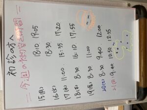 上記お時間以外にもキャンセルや予約時間の変更により予約の空きができるケースもございますのでお気軽にお電話、お問合せお待ちしております。